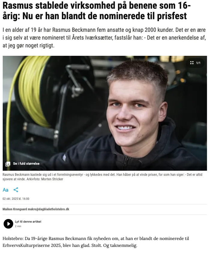Rasmus er 19 år gammel og har været selvstændig siden 2023 hvor han gik på efterskole.